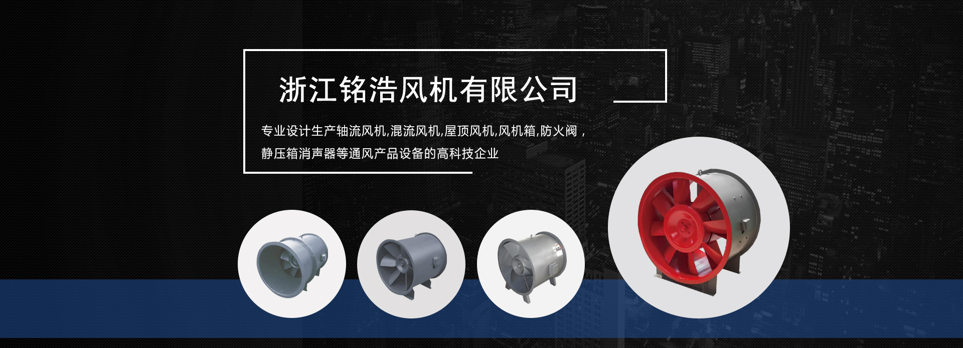 浙江銘浩風機有限公司(原名:浙江明豪通風設備有限公司)是浙江銘浩國際集團下屬企業之一,集團下屬企業有:浙江旻浩冷卻設備有限公司(生產各種冷卻設備),杭州明豪節能科技有限公司(各種控制電控箱及組態軟件),浙江銘浩風機有限公司 是一家專業設計生產軸流風機,混流風機,屋頂風機,風機箱,防火閥,靜壓箱消聲器等通風產品設備的高科技企業。座落于風景秀麗的龍山腳下曹娥江畔,在104國道和上三線高速公路的近側,毗鄰滬杭甬高速公路,杭甬公鐵及杭甬高鐵,通過嘉紹跨海大橋與嘉興相連,屬上海二小時經濟圈內,交通十分便利。生產基地地址在浙江省紹興市上虞區豐惠工業區創業路,辦公區在紹興市上虞區CBD商務區錦茂大廈,杭州辦公區在杭州市錢塘新區下沙和達城。
